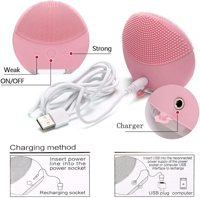 RECHARGEABLE VIBRATING FACE BRUSH : Adopts magnetic contact charging, the face cleansing brush allows you to recharge it conveniently by simple contact. Save your time from finding the right position to insert the plug into the charging port.