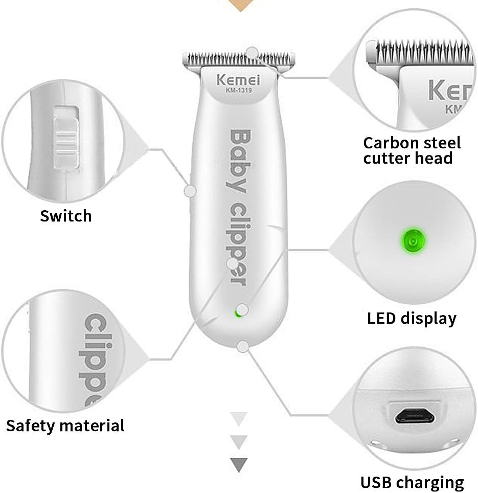 - Ultra Quiet -KEMEI baby hair clippers with a new ultra-quiet motor, sound less than 50db. Shock absorption structures design, let baby feel relax and not be afraid of hair cutting any more. Make the process safer and easier.