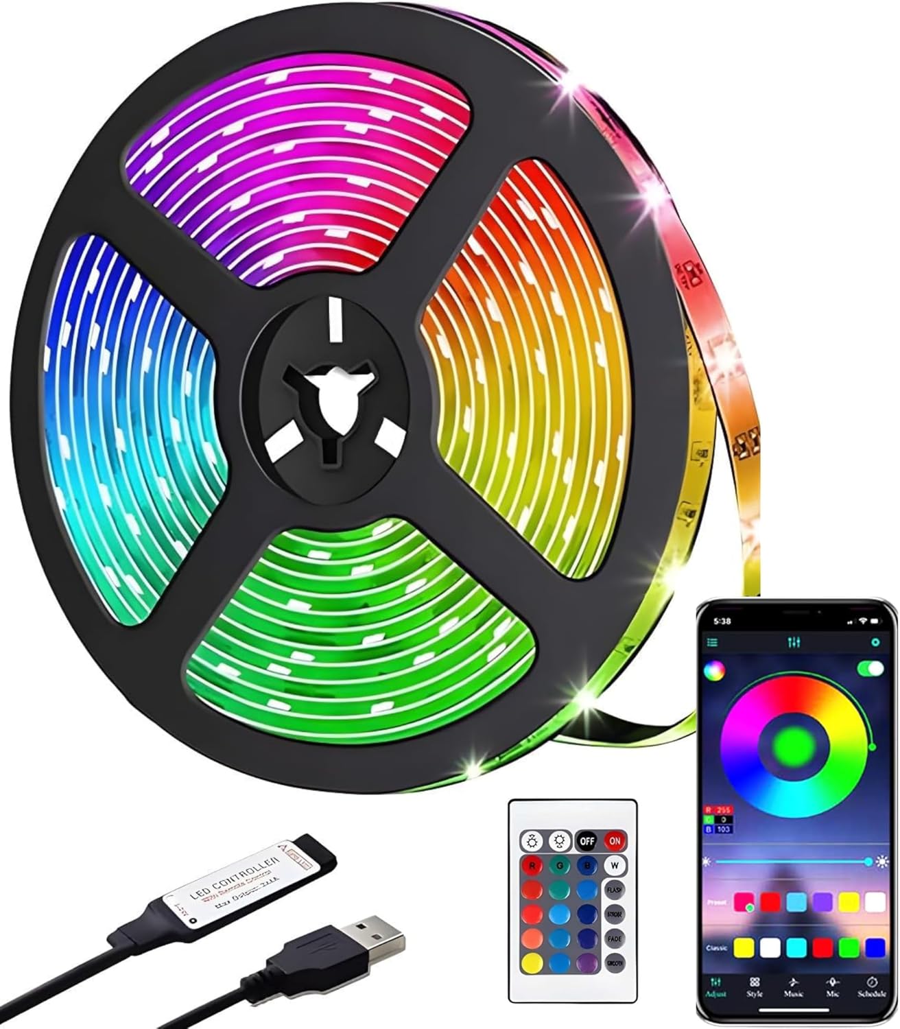 - Music Sync LED Lights - The RGB LED strip syncs with music by adjusting colors and speed to the rhythm in intelligent music mode via the app. Whether gaming, watching movies, or relaxing, the dynamic lighting enhances the experience while reducing eye strain and creating immersive effects.