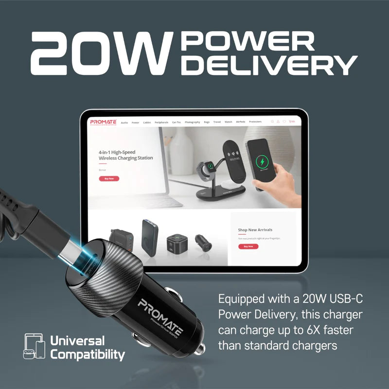 Equipped with a 20W Lightning Connector Power Delivery, the PowerDrive-33PDi car charger can charge up to 6X faster than standard chargers. The built-in Lightning Connector coiled cable can stretch from 1 to 3-feet. SuperSpeed Charging for every adventure.