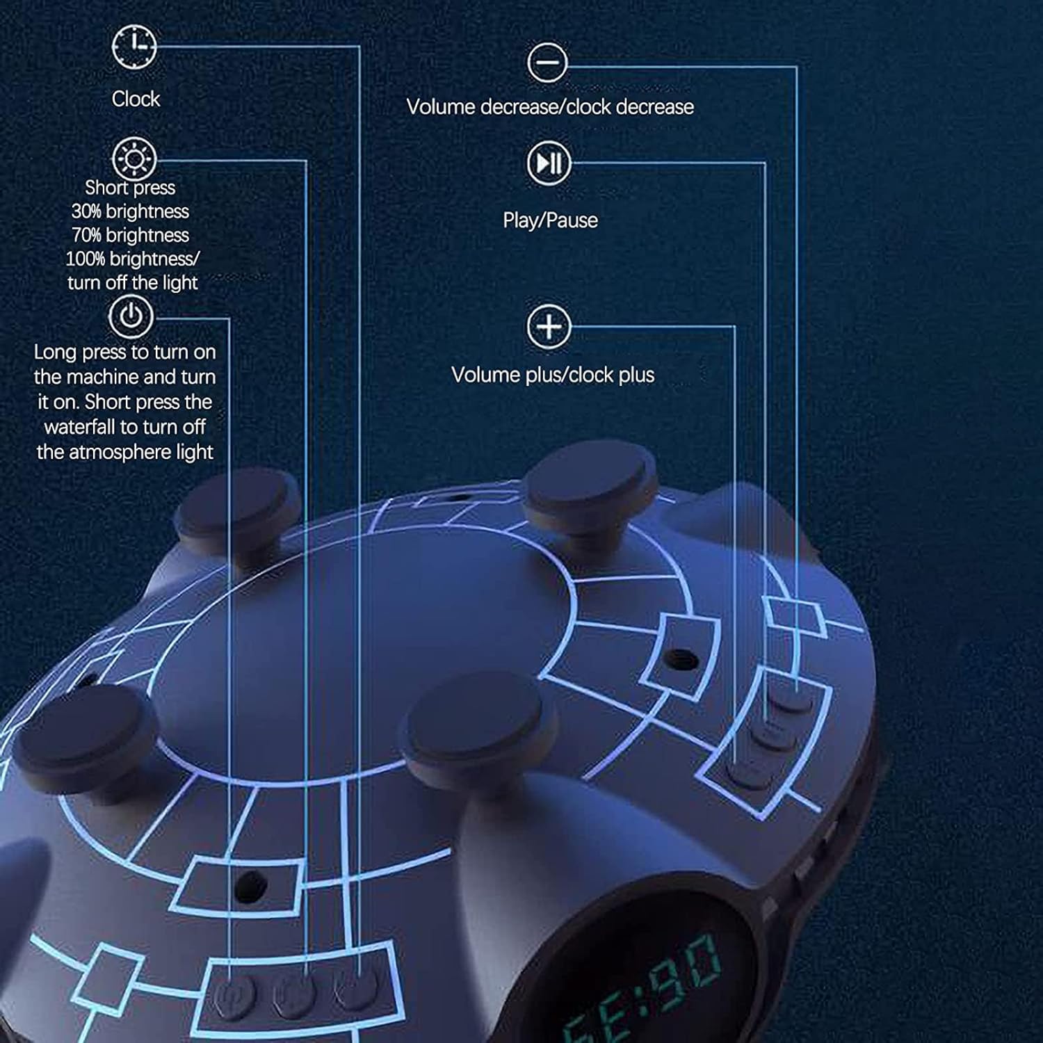 Bluetooth Speaker Table Desk Lamp Clock Audio RGB Rhythm Atmosphere Light Waterfall Bass Wireless Speakers