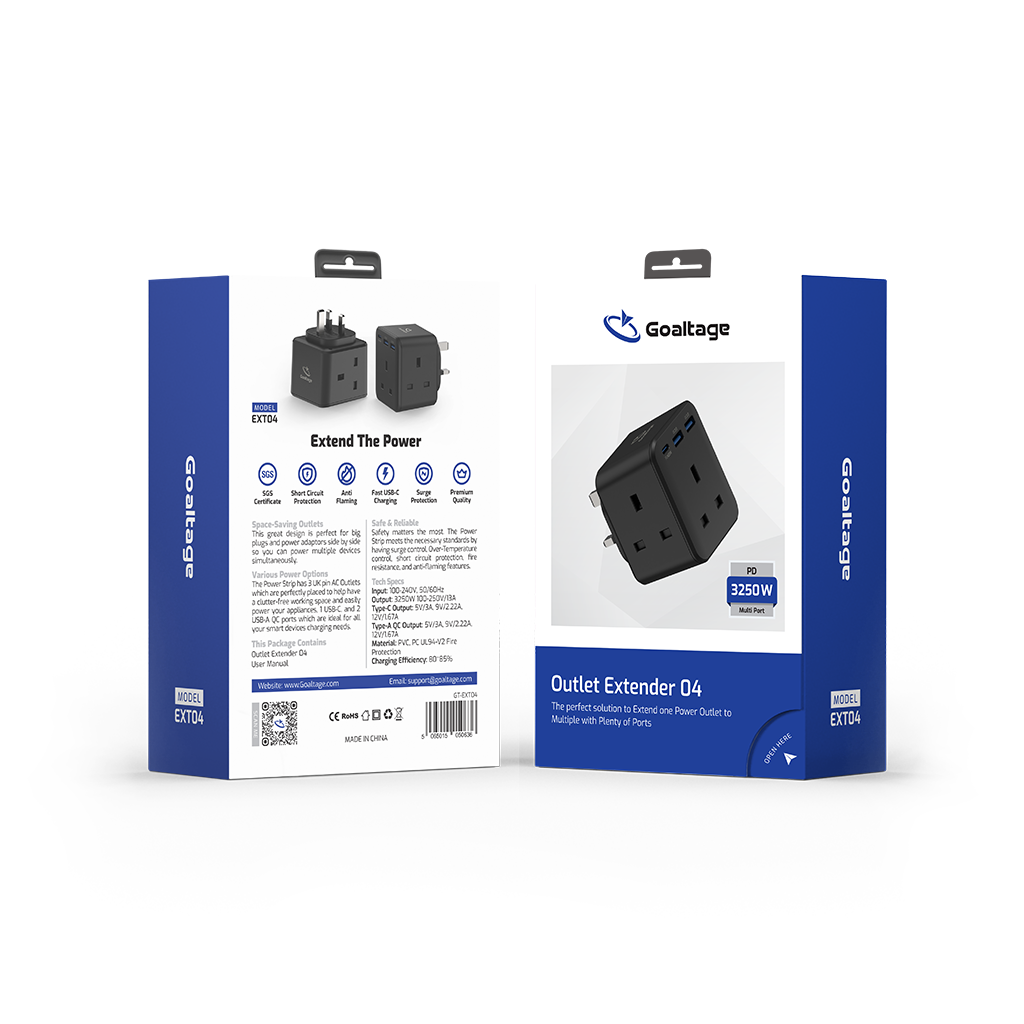 Safety is paramount with the EXT04 OutletExtender Extension, as it perfectly meets necessary standards and incorporates various protective features such as surge control, over-temperature control, short circuit protection, fire resistance, and anti-flaming measures. Rest assured, your devices are safeguarded, providing you with peace of mind.