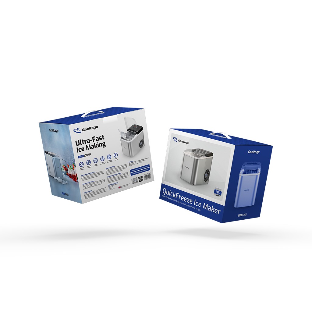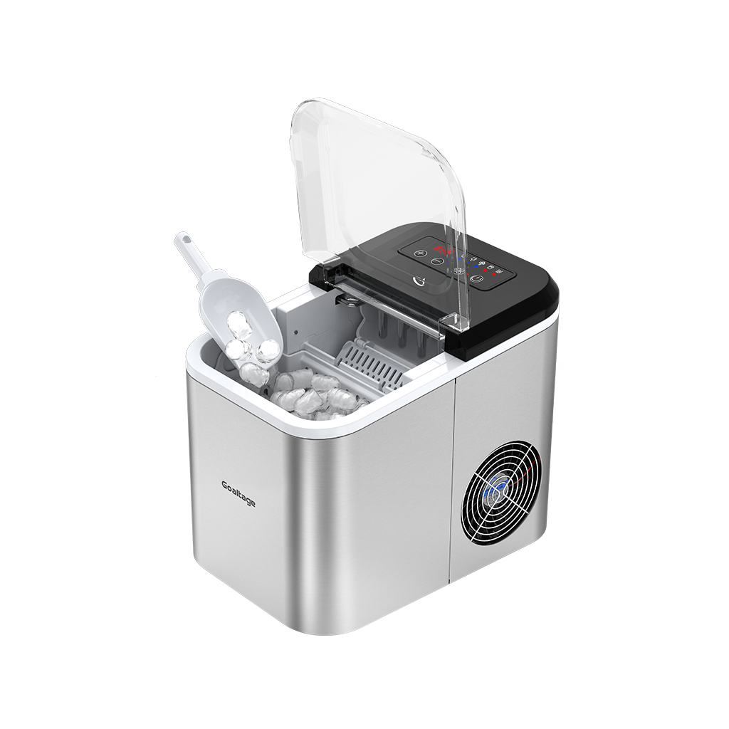 The ICM01 QuickFreeze Ice Maker features an intuitive smart control panel that simplifies the ice-making process. Clear indicators provide reminders to remove the ice when the storage bin is full or to add water when needed. This thoughtful design ensures that your ice-making experience is smooth and hassle-free, allowing you to concentrate on your activities. Additionally, the transparent viewing window enables you to monitor the ice production process easily, so you know when to expect your next batch.