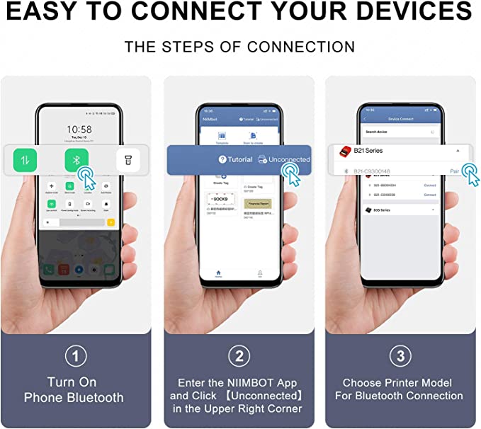 Connecting to the NIIMBOT app via Bluetooth and creating labels within the application