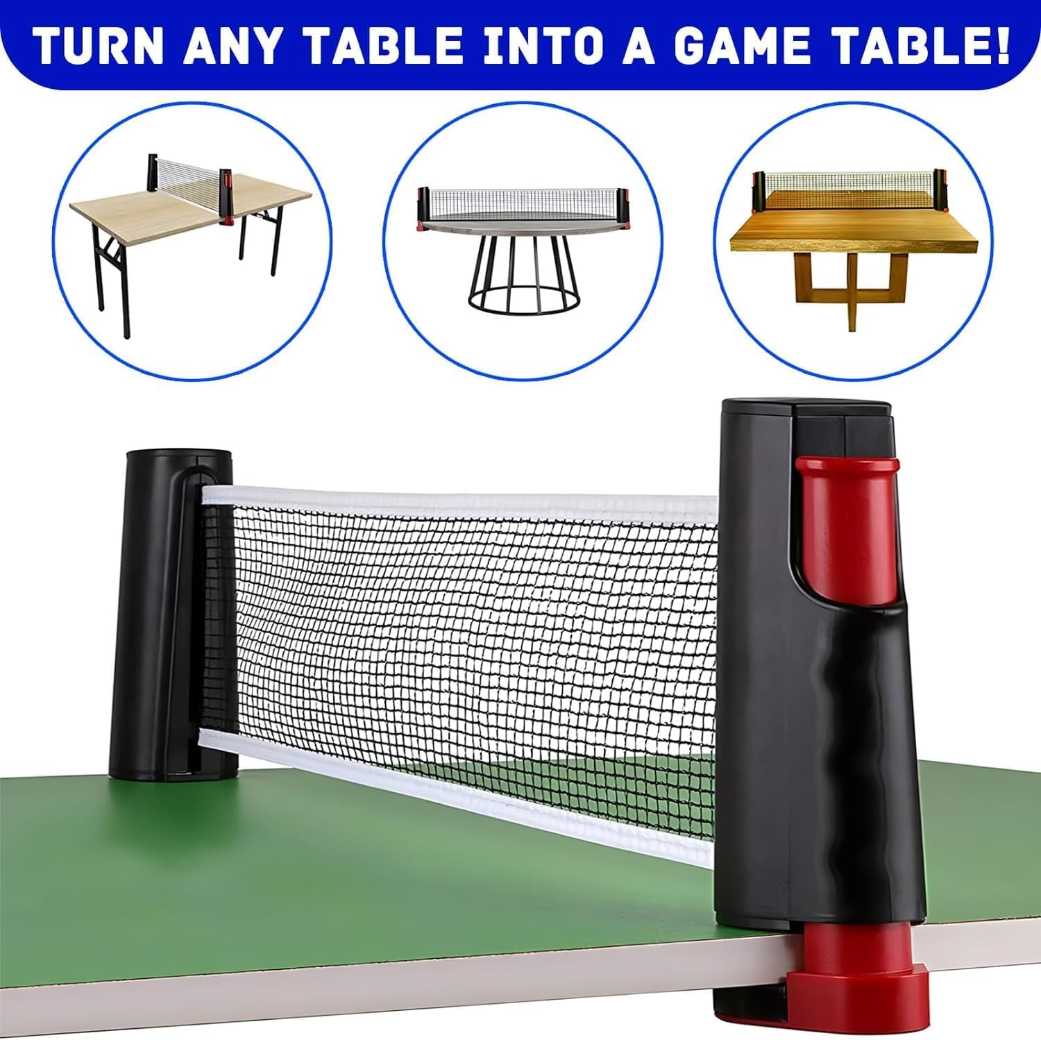 Retractable ping pong net can attach to the table below 5cm thickness, any place can be turned into a game field promptly. When you’re done, revert it back when finished: a push of the trigger makes the net retract and collapse
