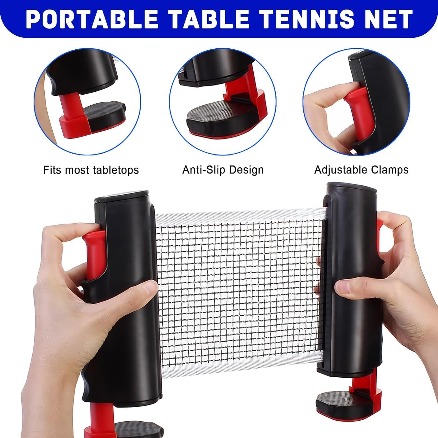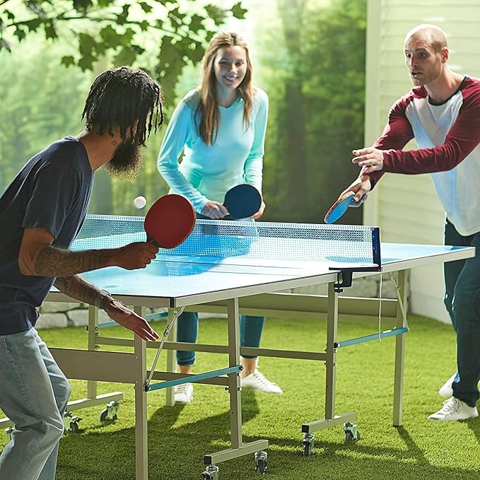 This ping pong paddles set includes 2 high-performance paddles, a portable retractable ping pong net, and 6 ping pong balls. It's very convenient for family members or Ping Pong lovers to play the table tennis anytime anywhere