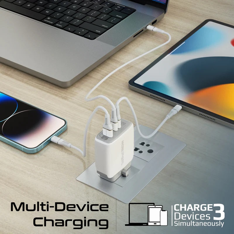 Experience powerful charging with PowerPort-120, featuring next-generation GaN technology for faster and more efficient charging. GaN tech works to lower power consumption, maximize charging efficiency, and provide up to 120W of charging power. Charge 3 laptops, smartphones, or tablets at the same time and at maximum speeds. Equipped with dual USB-C Power Delivery ports and a QC 3.0 USB port, PowerPort-120 adapts according to the device connected for the safest maximum output per port. This handy wall charger is reliable and protects your device from overcharging and short-circuiting as well.