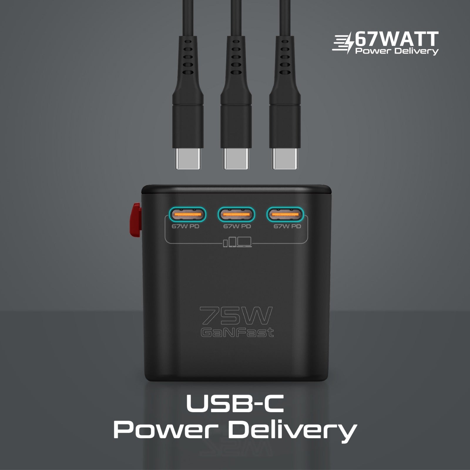 It is an advanced multi-zone travel adapter that is compatible with most international plugs. Ideal for frequent travelers, the adapter uses an innovative slide-out plug design and is compatible in 150 countries around the world. It contains 3 Type-C ports with a power of up to 75W
