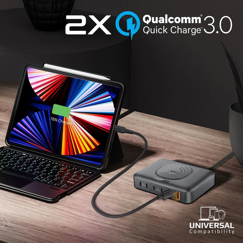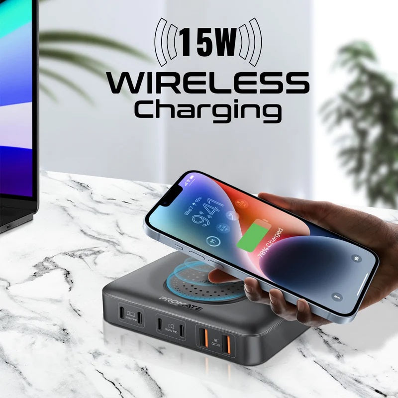 Promate GaNFast™ 100W Power Delivery Charging Station with 15W Wireless Charger