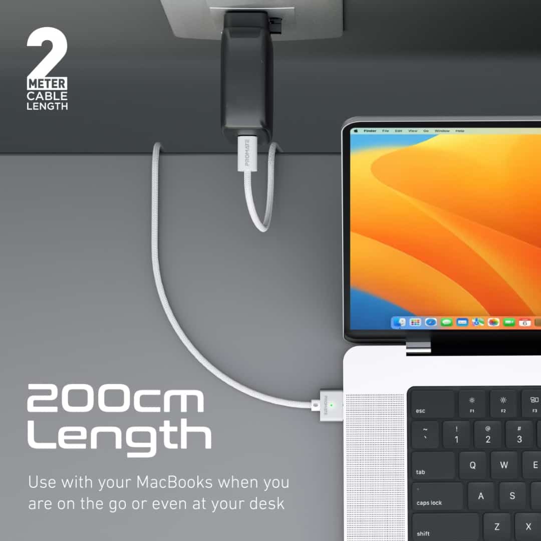 Promate High Tensile Strength 140w USB-c to Magsafe Charging for MacBook with 140w power Delivery and Tangle free Nylon braided MacBook pro and MacBook Air
