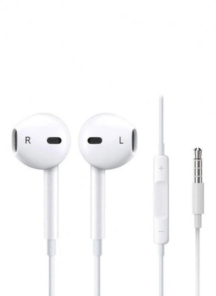 3.5mm Wired Earphone, Three Frequencies Balanced Clearer Hearing Experience, White, Universal earphone, Built-in Microphone, Built-in Controllers. Android, Iphone Compatible,