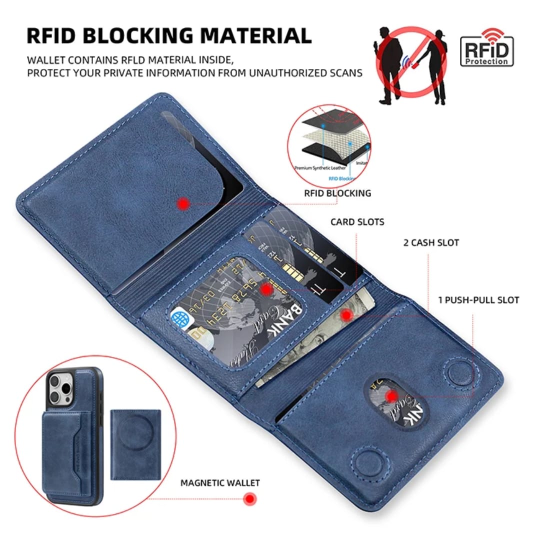 Simple Foldable PU Leather Credit Card Holder for iPhone Solid Magnetic Phone Wallet